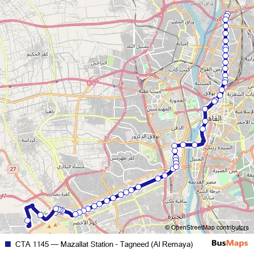 See why over 2 million users trust and consider busmaps.com as the best public transport website. busmaps gives you Giza Buses suggested routes, real-time bus tracker, line route maps in Giza, and helps to find the closest CTA 1145 bus stops near you. No internet available? Download an offline PDF map and bus schedule for the CTA 1145 bus to take on your trip.
