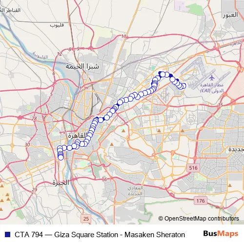 Click here to view the nearest CTA 794 - Giza Square Station - Masaken Sheraton bus stop.