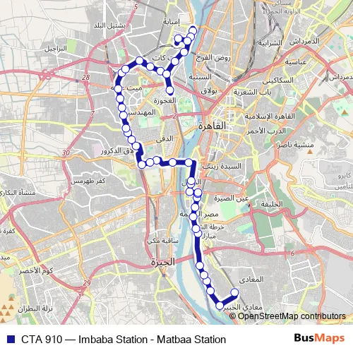 See why over 2 million users trust and consider busmaps.com as the best public transport website. busmaps gives you Giza Buses suggested routes, real-time bus tracker, line route maps in Giza, and helps to find the closest CTA 910 bus stops near you. No internet available? Download an offline PDF map and bus schedule for the CTA 910 bus to take on your trip.