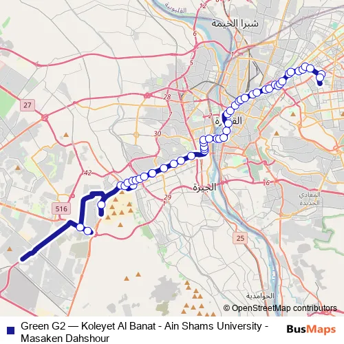 Click here to view the nearest Green G2 - Koleyet Al Banat - Ain Shams University - Masaken Dahshour bus stop.