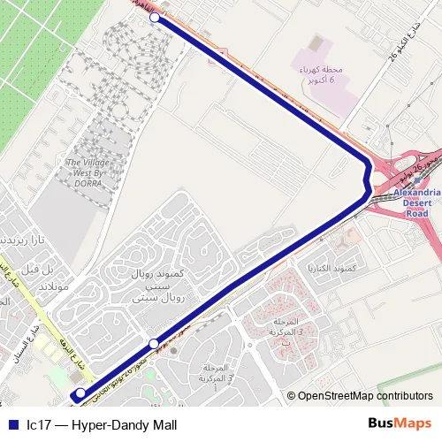 The first stop of the Ic17 bus route is Dandy Mall and the last stop is Hyper One - Sheikh Zayed. Ic17 (Hyper-Dandy Mall) is operational during everyday.