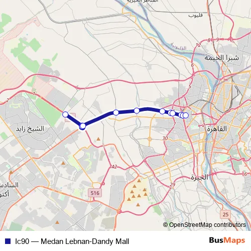Bus Ic90 - Medan Lebnan-Dandy Mall in Cairo: Stops & Timetable