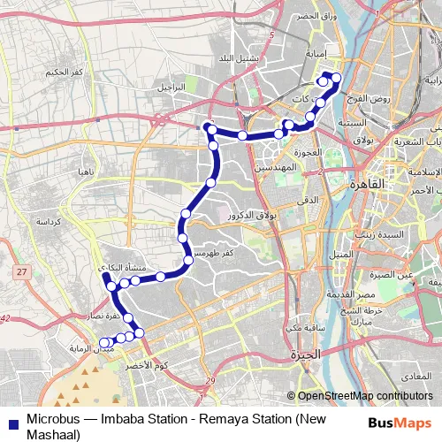 The first stop of the Microbus bus route is Imbaba and the last stop is Al Remaya Square. Microbus (Imbaba Station - Remaya Station (New Mashaal)) is operational during everyday.