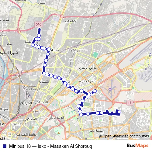 See why over 2 million users trust and consider busmaps.com as the best public transport website. busmaps gives you Cairo Buses suggested routes, real-time bus tracker, line route maps in Cairo, and helps to find the closest Minibus 18 bus stops near you. No internet available? Download an offline PDF map and bus schedule for the Minibus 18 bus to take on your trip.