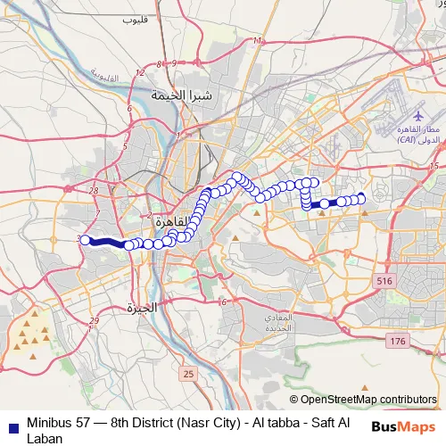 See why over 2 million users trust and consider busmaps.com as the best public transport website. busmaps gives you Cairo Buses suggested routes, real-time bus tracker, line route maps in Cairo, and helps to find the closest Minibus 57 bus stops near you. No internet available? Download an offline PDF map and bus schedule for the Minibus 57 bus to take on your trip.