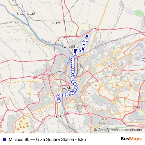 See why over 2 million users trust and consider busmaps.com as the best public transport website. busmaps gives you Cairo Buses suggested routes, real-time bus tracker, line route maps in Cairo, and helps to find the closest Minibus 90 bus stops near you. No internet available? Download an offline PDF map and bus schedule for the Minibus 90 bus to take on your trip.