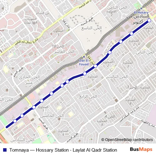 The first stop of the Tomnaya bus route is Al Sewedy (Laylat Al Qadr) and the last stop is Hossary Station. Tomnaya (Hossary Station - Laylat Al Qadr Station) is operational during everyday.
