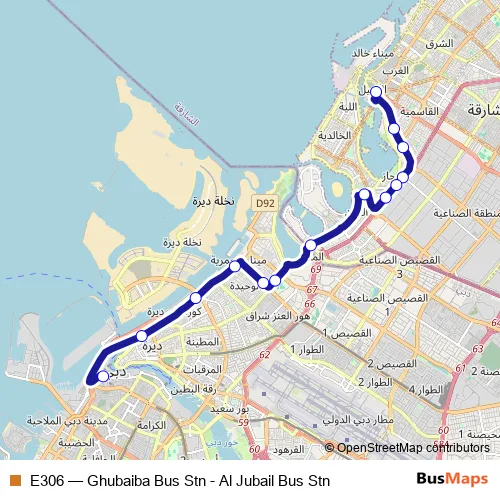 See why over 2 million users trust and consider busmaps.com as the best public transport website. busmaps gives you Sharjah Buses suggested routes, real-time bus tracker, line route maps in Sharjah, and helps to find the closest E306 bus stops near you. No internet available? Download an offline PDF map and bus schedule for the E306 bus to take on your trip.