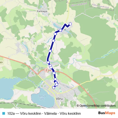 102a Bus - Võru kesklinn - Väimela - Võru kesklinn