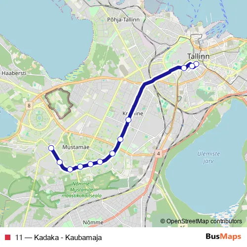 Bus 11 - Kadaka - Kaubamaja in Tallinn: Stops & Timetable