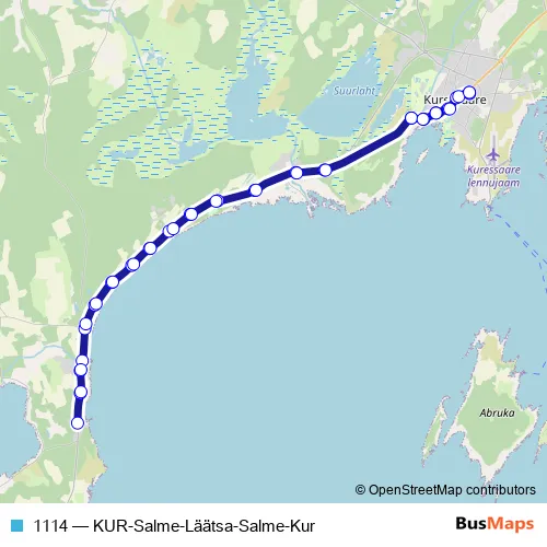 Click here to view the nearest 1114 - KUR-Salme-Läätsa-Salme-Kur bus stop.