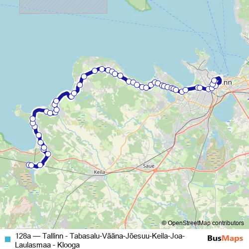Bus 128a - Tallinn - Tabasalu-Vääna-Jõesuu-Keila-Joa-Laulasmaa - Klooga Schedule in Tallinn