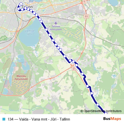 Bus 134 - Vaida - Vana mnt - Jüri - Tallinn in Tallinn: Stops & Timetable