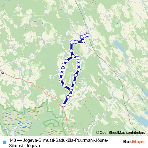 Click here to view the nearest 143 - Jõgeva-Siimusti-Saduküla-Puurmani-Jõune-Siimusti-Jõgeva bus stop.