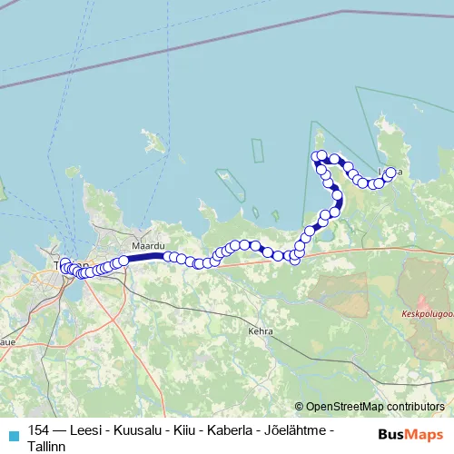 154 Bus - Leesi - Kuusalu - Kiiu - Kaberla - Jõelähtme - Tallinn