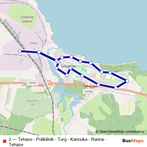 Bus 2 - Tehase - Polikliinik - Turg - Kannuka - Ranna - Tehase: Full Schedule in Sillamaee