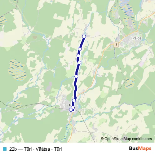 Bus 22b - Türi - Väätsa - Türi in Tueri: Stops & Timetable