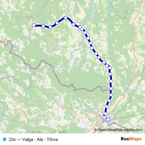 The first stop of the 22e bus route is Valga bussijaam and the last stop is Tõrva. 22e (Valga - Ala - Tõrva) is operational during on weekdays.