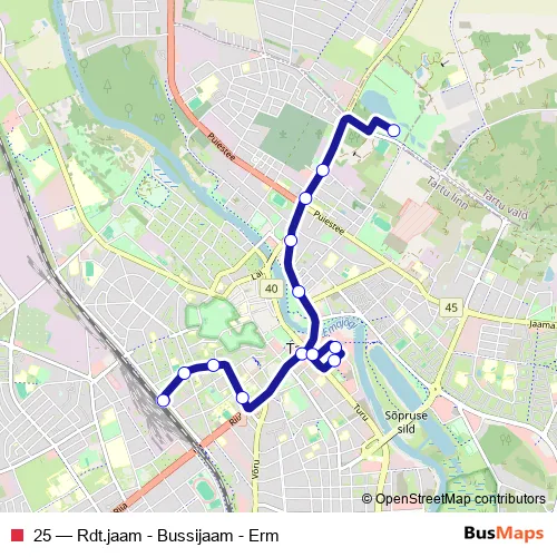 See why over 2 million users trust and consider busmaps.com as the best public transport website. busmaps gives you Tartu Buses suggested routes, real-time bus tracker, line route maps in Tartu, and helps to find the closest 25 bus stops near you. No internet available? Download an offline PDF map and bus schedule for the 25 bus to take on your trip.