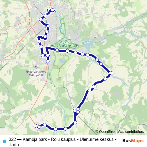 322 Bus - Kambja park - Roiu kauplus - Ülenurme keskus - Tartu