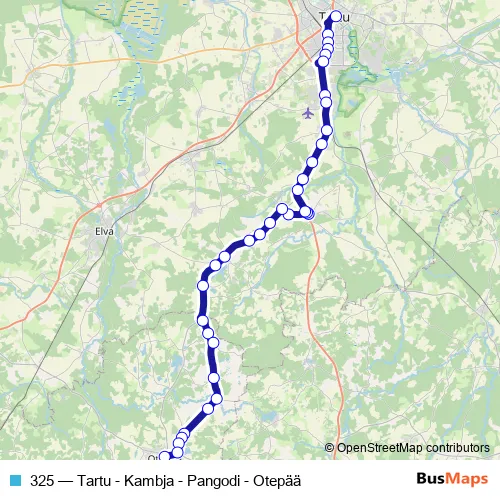 The first stop of the 325 bus route is Tartu bussijaam and the last stop is Otepää. 325 (Tartu - Kambja - Pangodi - Otepää) is operational during everyday.