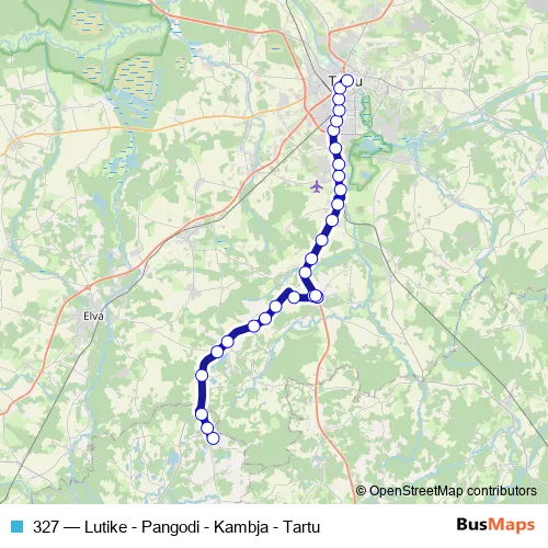 The first stop of the 327 bus route is Lutike and the last stop is Tartu bussijaam. 327 (Lutike - Pangodi - Kambja - Tartu) is operational during on weekdays.