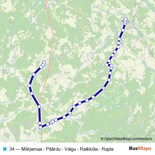 Bus 34 - Märjamaa - Päärdu - Valgu - Raikküla - Rapla: Full Schedule in Maerjamaa