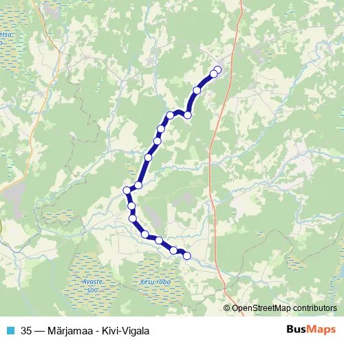 The first stop of the 35 bus route is Märjamaa and the last stop is Kivi-Vigala. 35 (Märjamaa - Kivi-Vigala) is operational during on weekdays.