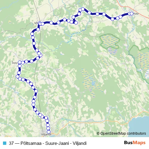The first stop of the 37 bus route is Viljandi bussijaam and the last stop is Põltsamaa. 37 (Põltsamaa - Suure-Jaani - Viljandi) is operational during on weekdays.