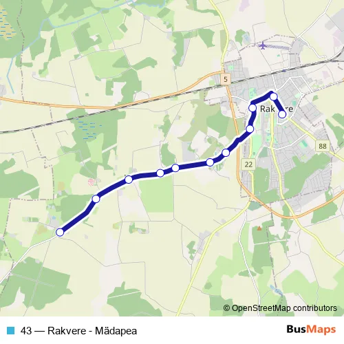 Bus 43 - Rakvere - Mädapea in Rakvere: Stops & Timetable