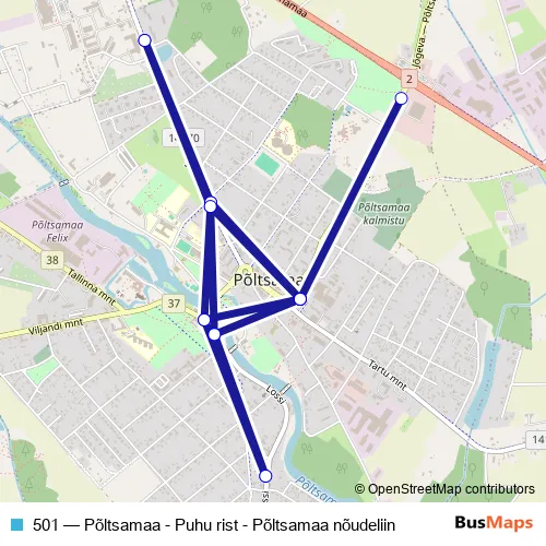 Bus 501 - Põltsamaa - Puhu rist - Põltsamaa nõudeliin in Poltsamaa: Stops & Timetable