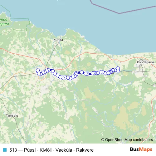 Click here to view the nearest 513 - Püssi - Kiviõli - Vaeküla - Rakvere bus stop.