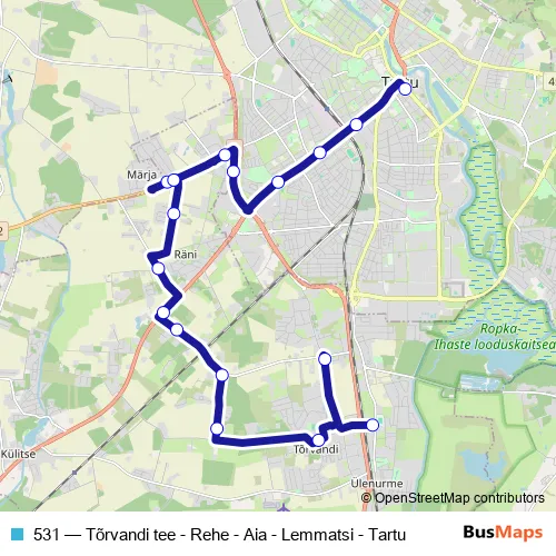 531 Bus - Tõrvandi tee - Rehe - Aia - Lemmatsi - Tartu