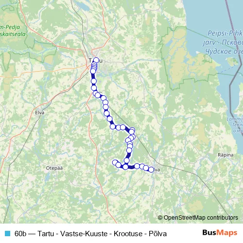 Bus 60b - Tartu - Vastse-Kuuste - Krootuse - Põlva: Full Schedule in Polva