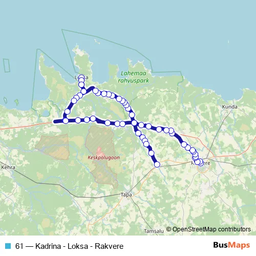 Bus 61 - Kadrina - Loksa - Rakvere in Loksa: Stops & Timetable