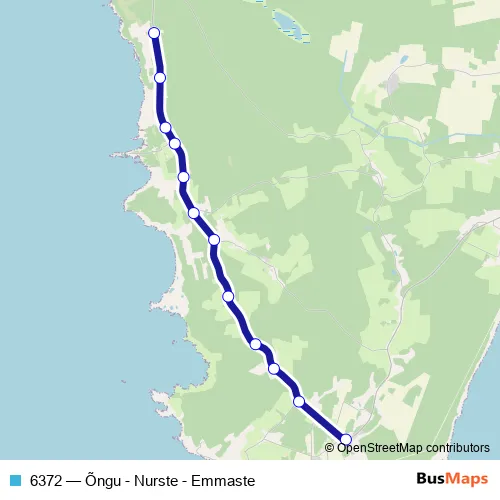 The first stop of the 6372 bus route is Õngu and the last stop is Emmaste. 6372 (Õngu - Nurste - Emmaste) is operational during on weekdays.