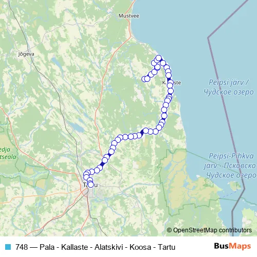 Bus 748 - Pala - Kallaste - Alatskivi - Koosa - Tartu in Alatskivi: Stops & Timetable