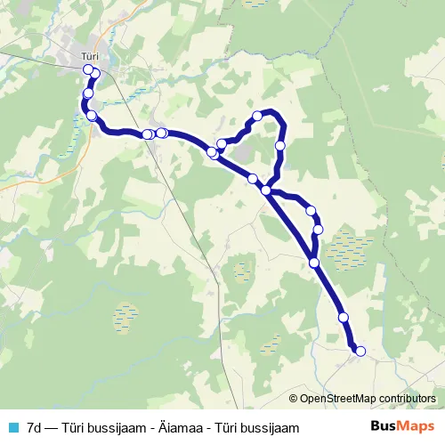Bus 7d - Türi bussijaam - Äiamaa - Türi bussijaam in Tueri: Stops & Timetable