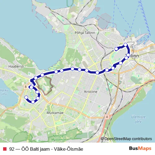 92 Bus - ÖÖ Balti jaam - Väike-Õismäe