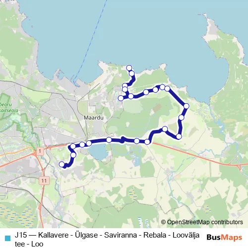 J15 (Kallavere - Ülgase - Saviranna - Rebala - Loovälja tee - Loo) Bus in Maardu
