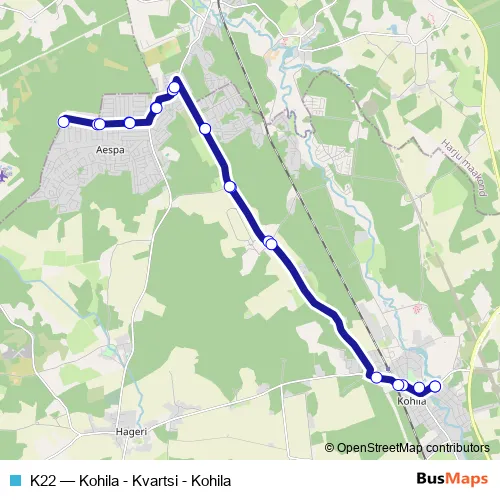 Bus K22 - Kohila - Kvartsi - Kohila in Kohila: Stops & Timetable
