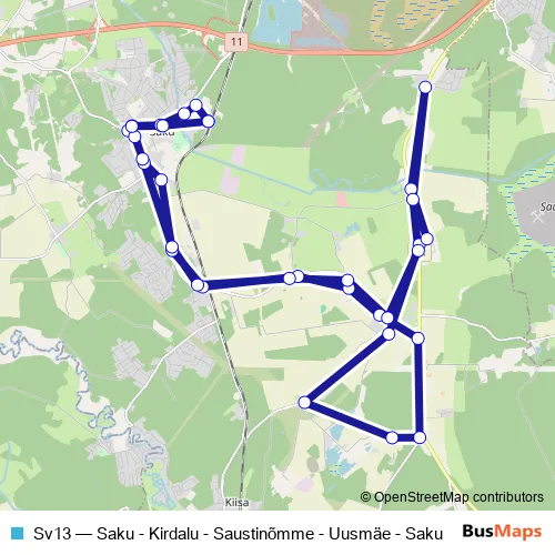 Bus Sv13 - Saku - Kirdalu - Saustinõmme - Uusmäe - Saku in Saku: Stops & Timetable