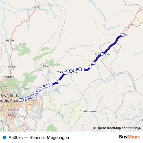 Megenagna. Ab007s (Shano ↔ Megenagna) is operational during everyday.