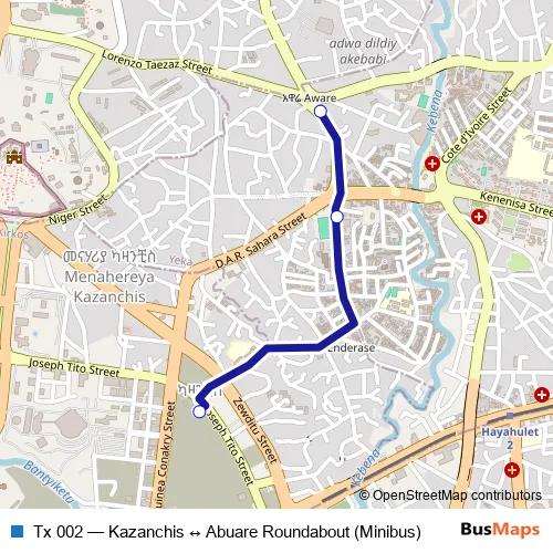 Abuare Roundabout. Tx 002 (Kazanchis ↔ Abuare Roundabout (Minibus)) is operational during everyday.