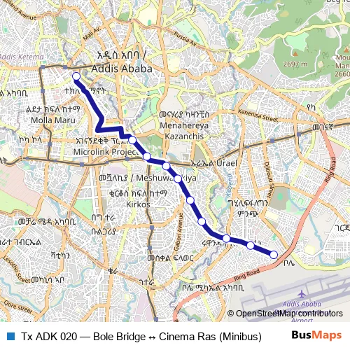 Bus Tx ADK 020 - Bole Bridge ↔ Cinema Ras (Minibus) in Addis Ababa: Stops & Timetable