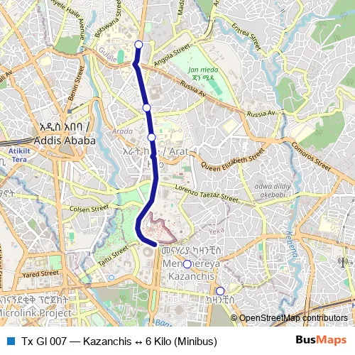Click here to view the nearest Tx Gl 007 - Kazanchis ↔ 6 Kilo (Minibus) bus stop.
