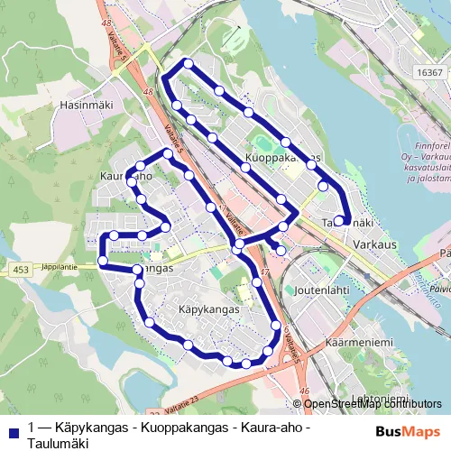 Bus 1 - Käpykangas - Kuoppakangas - Kaura-aho - Taulumäki in Varkaus: Stops & Timetable