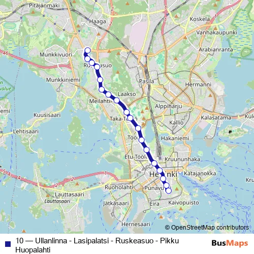 See why over 2 million users trust and consider busmaps.com as the best public transport website. busmaps gives you Helsinki Trams suggested routes, real-time bus tracker, line route maps in Helsinki, and helps to find the closest 10 tram stops near you. No internet available? Download an offline PDF map and bus schedule for the 10 tram to take on your trip.