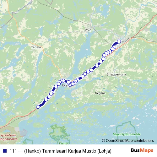 Click here to view the nearest 111 - (Hanko) Tammisaari Karjaa Mustio (Lohja) bus stop.