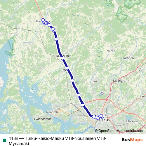 Bus 118n - Turku-Raisio-Masku VT8-Nousiainen VT8-Mynämäki Schedule in Mynaemaeki